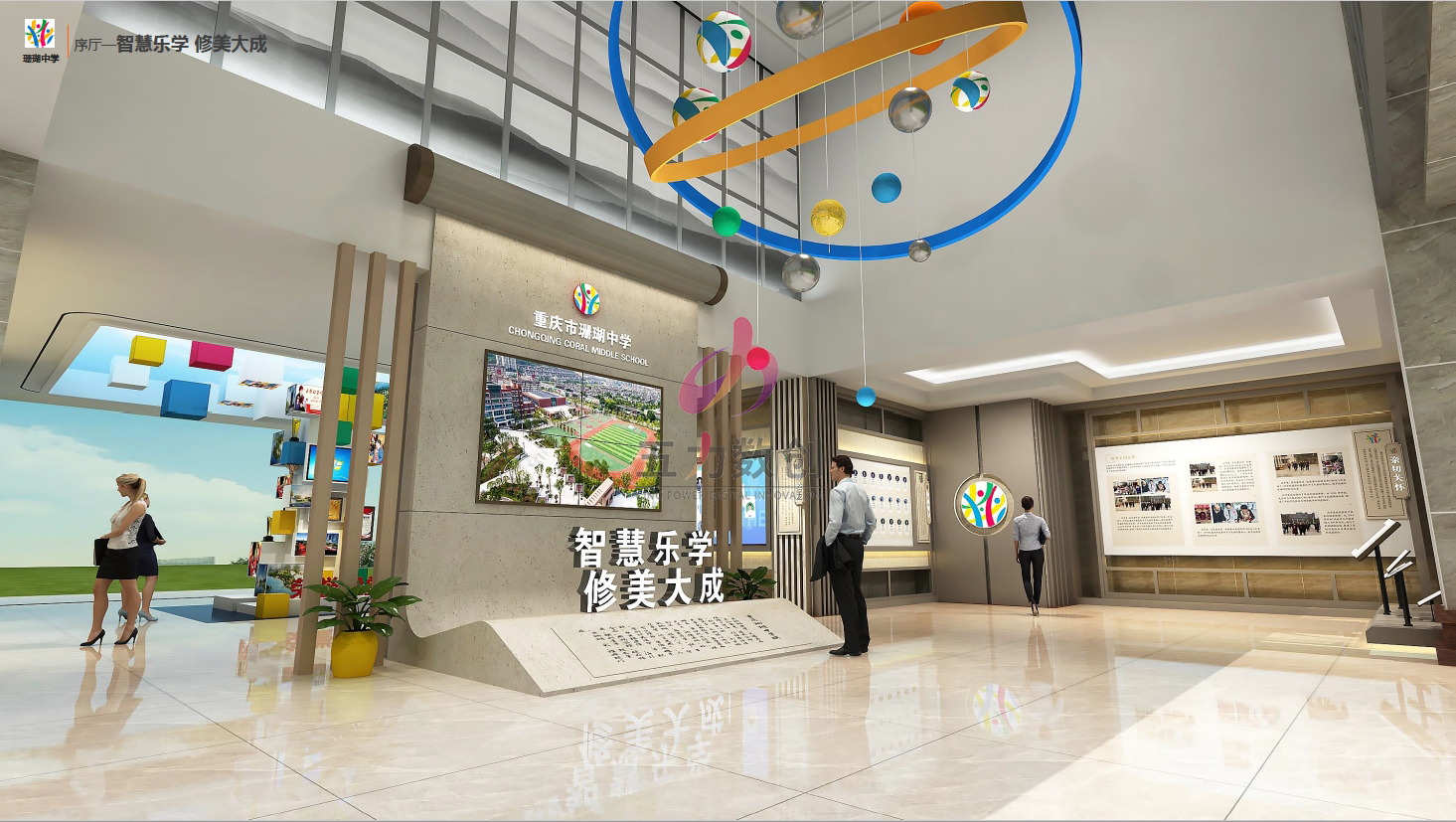 展廳設計提取學校LOGO元素,為整個空間設計了和諧統一的展廳風格和色調,并融進聲光電、數字多媒體展示形式,和圖文展板相輔相成,合理布局序廳、歷史廳、現代廳、未來廳等四個展區,以聲情并茂繪聲繪色的方式打造富有特色、充滿活力、現代新穎的珊瑚中學校史館,深刻突出了珊中的優良傳統、辦學特色和思想精髓。